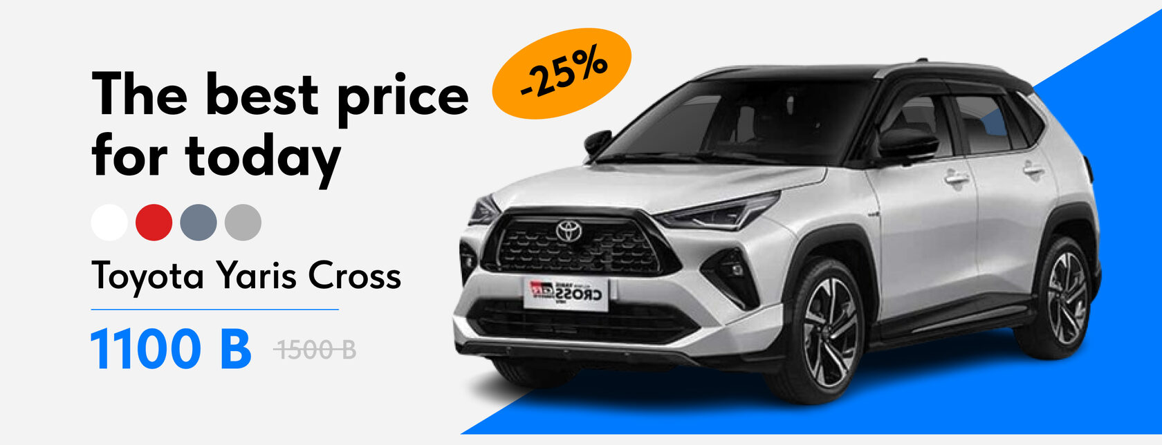 If you want to rent a car for a period of 1 month or more, we have special offers with discounts up to 50%. You can contact us for current offers and prices by whatsapp or via phone call +66949783102